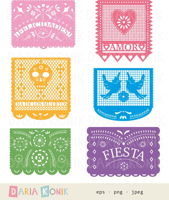 Papel Picado Clip Art Set Paper Cut Clip Art Mexican Folk Art Etsy